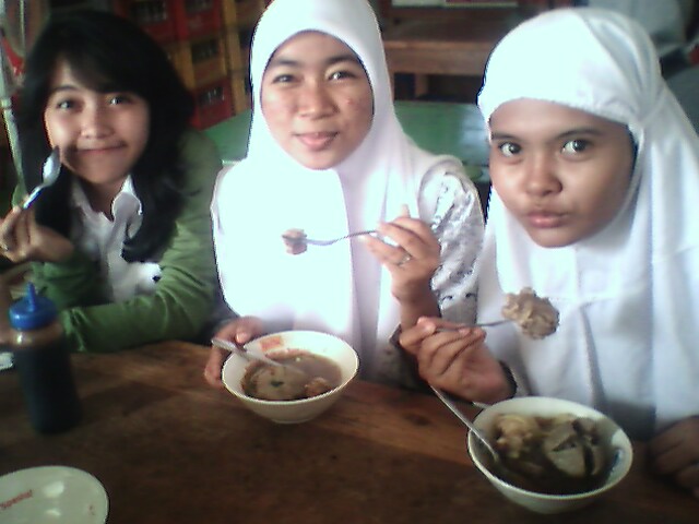 pd wkt itu asih, puti, gama, ari, pipin, n farah (miss geje) mulai beraksi berwisata kuliner ke bakso tulang rusuk..